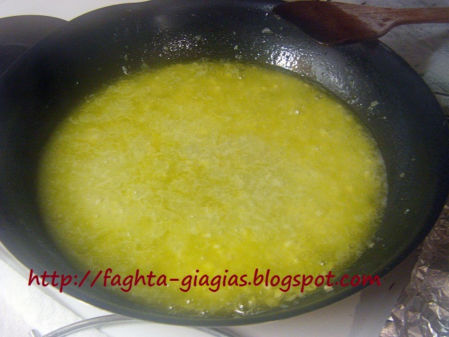 Στο ίδιο τηγάνι, αφού πρώτα πετάξουμε το λάδι από τα ψάρια, ή σε πλασωτέ κατσαρόλα, ρίχνουμε φρέσκο ελαιόλαδο και σοτάρουμε ελαφρά τα σκόρδα και τα κρεμμύδια, μέχρι να γυαλίσουν.